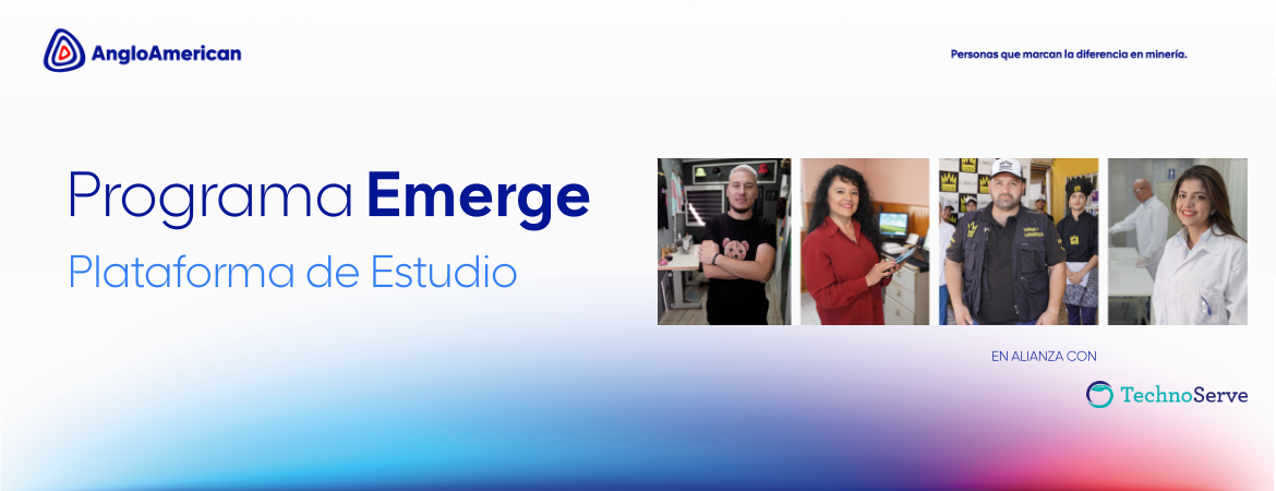 El Programa Emerge es una iniciativa de Anglo American que nació en el año 2006 y busca apoyar a micro y pequeños emprendedores que quieran empezar un negocio o hayan logrado cierto nivel de ventas en su negocio y que tengan la inquietud de dar un salto y crecer.